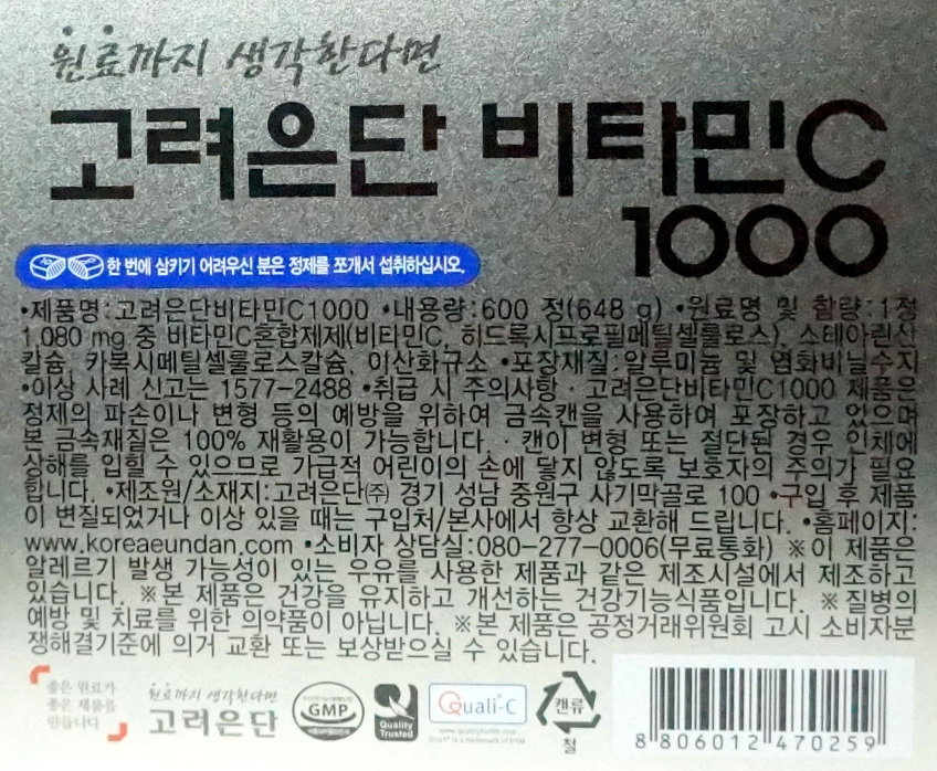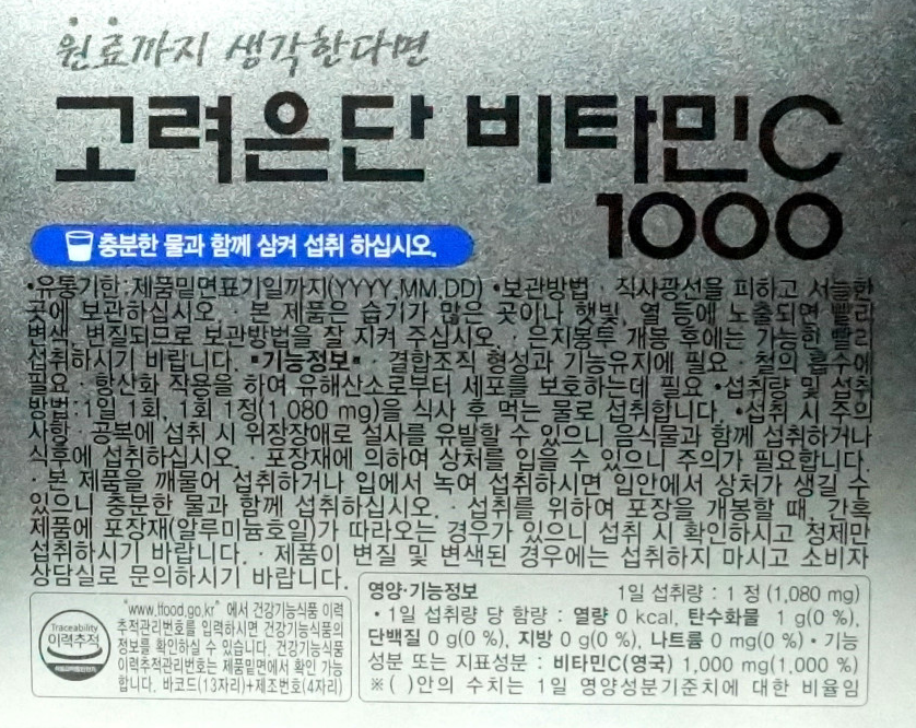 고려은단 비타민 C 1000 Vitamin C 1080ml x 300정