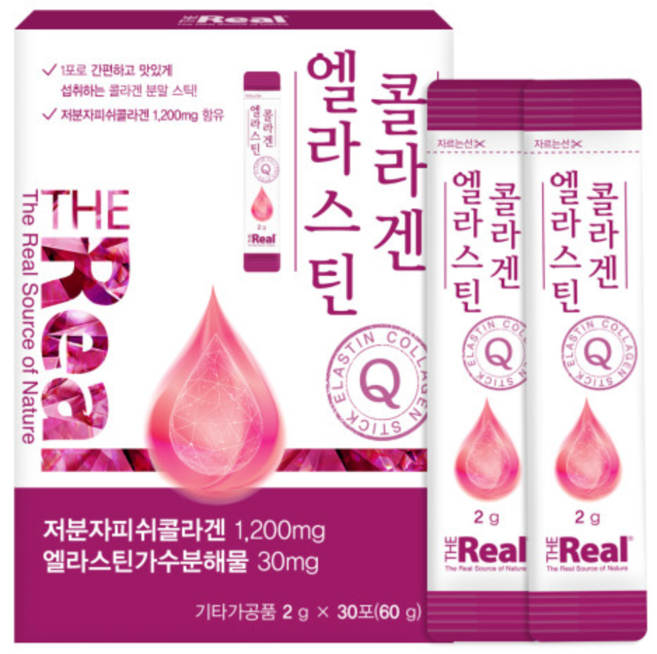 더리얼 엘라스틴 콜라겐 분말 (2g x 30포, 1개월분)