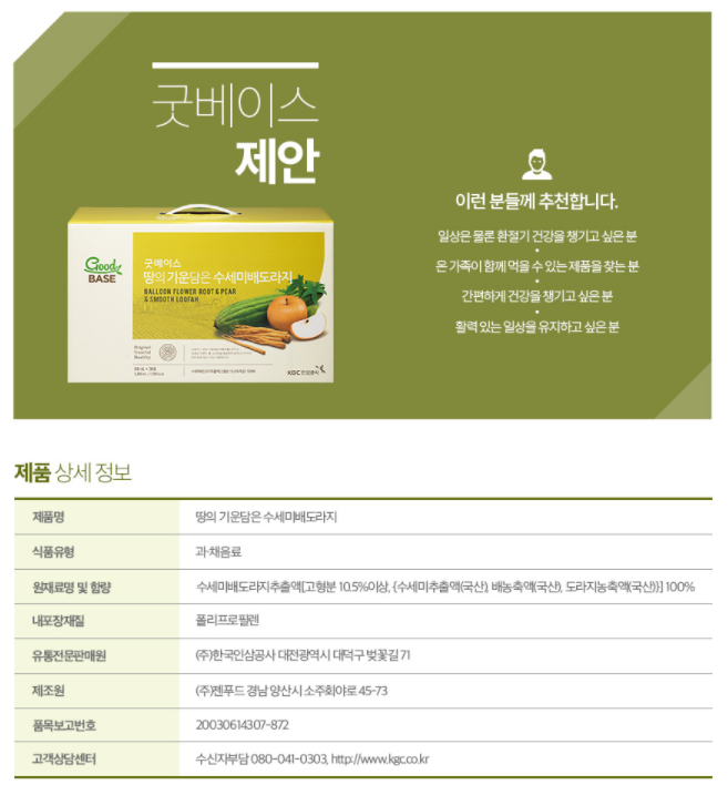 정관장 굿베이스 땅의 기운담은 수세미 배도라지 80ml 30포