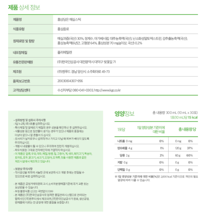 정관장 굿베이스 홍삼담은 매실스틱 10g 30포