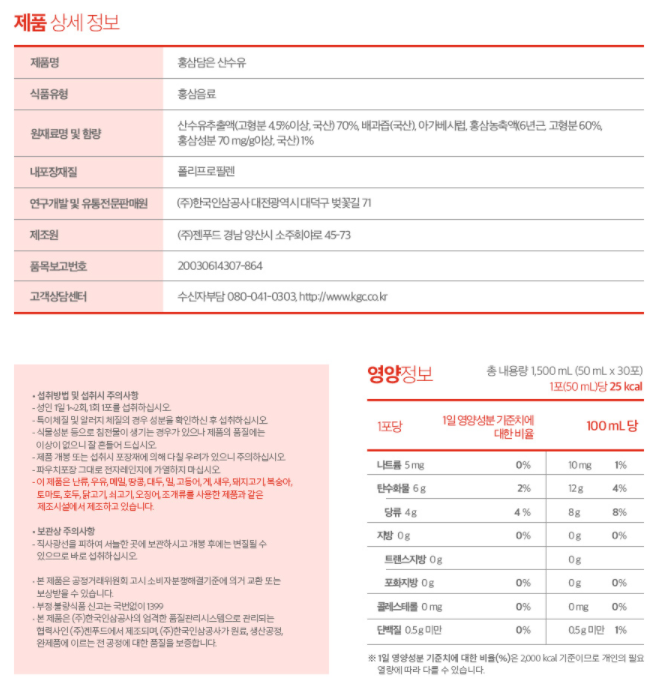 정관장 굿베이스 홍삼담은 산수유 50ml 30포