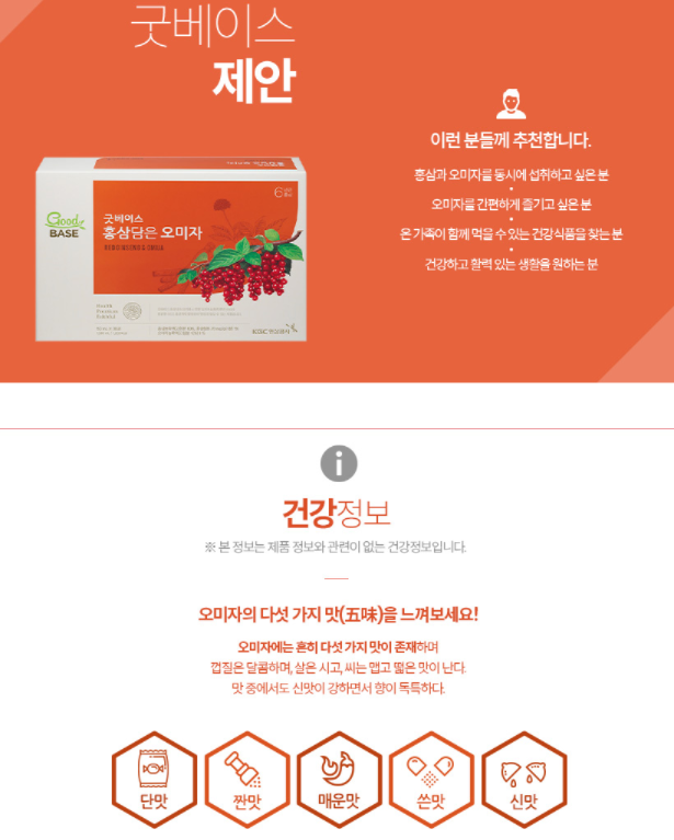 정관장 굿베이스 홍삼담은 오미자 50ml 30포