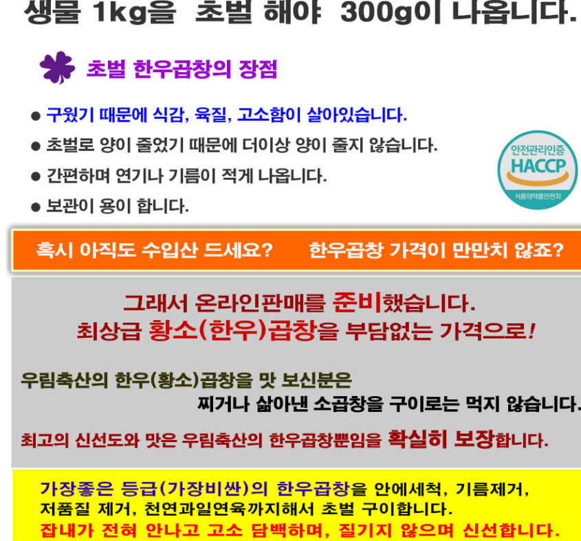 초벌 한우곱창 500g Semi Roasted Korean Beef Intestine