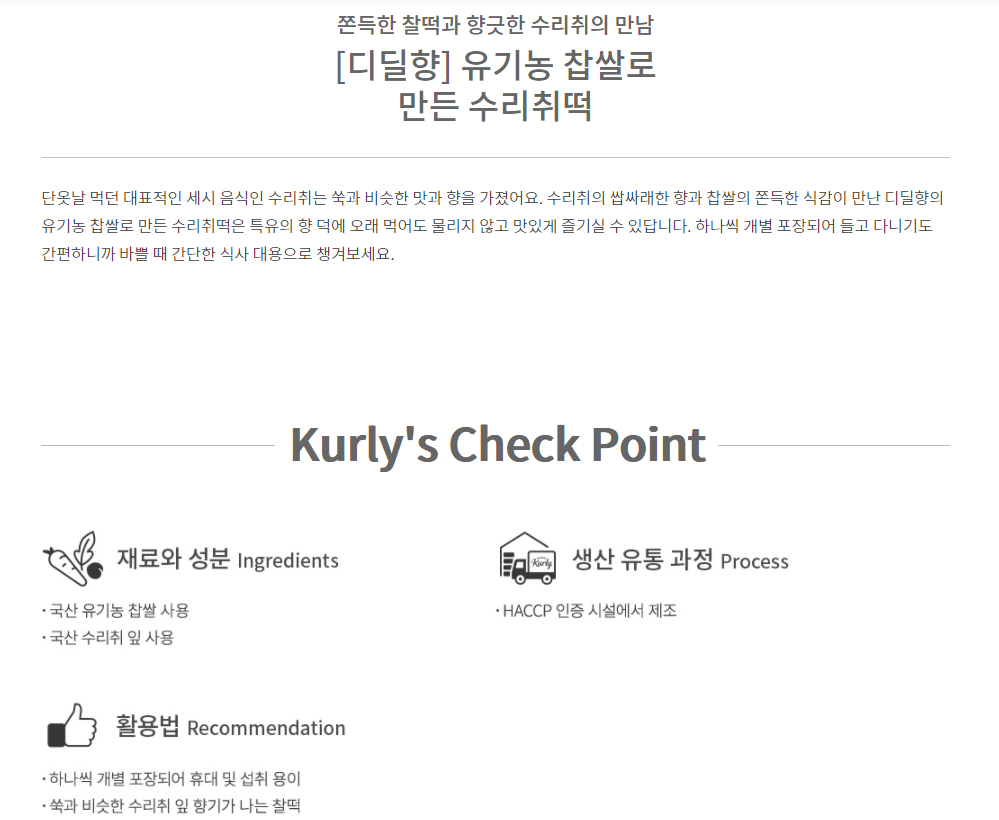 마켓컬리 유기농 찹쌀로 만든 수리취떡 400g
